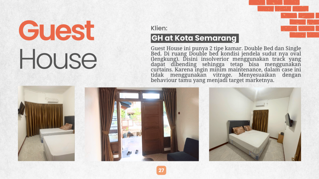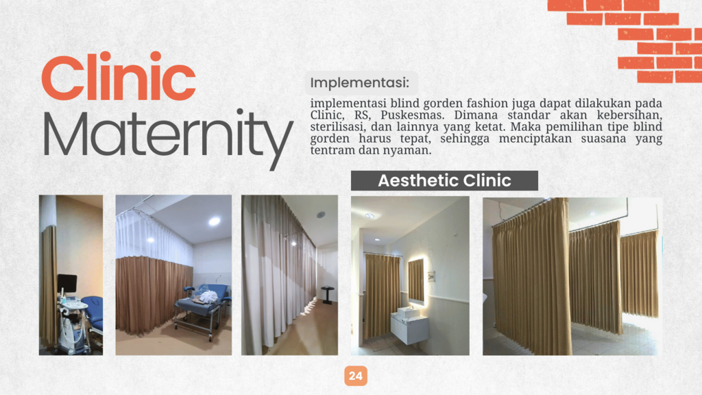 Hotel, apartemen, RS/klinik, kantor, dan kampus harus sesuai fungsinya. Pilihan elemen blind gorden fashion yang tidak tepat dapat menjadi masalah. Konsultasikan dengan kami untuk menciptakan suasana yang tepat untuk Anda atau usaha Anda.