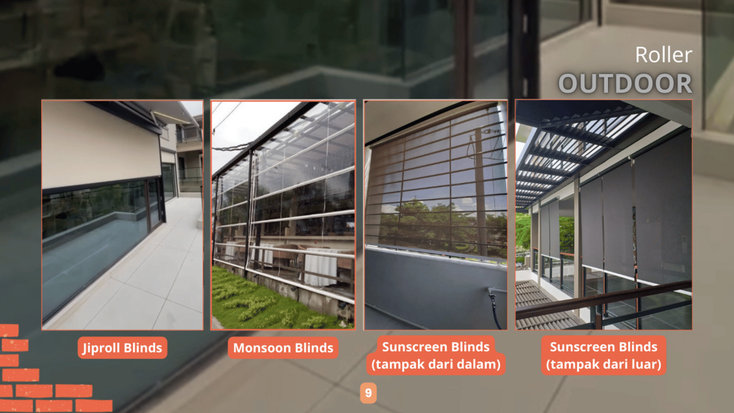 Area Outdoor mencakup area depan atau belakang seperti balkon, taman, kolam renang, serta tempat publik seperti café, restoran, beach club, & playground. Elemen Blind Gorden Fashion yang tepat sangat penting untuk menciptakan vibes yang sesuai.